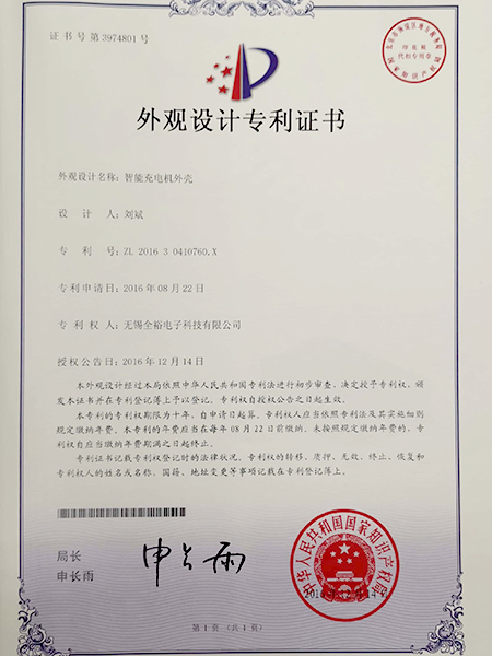 全??萍?外觀專利證書